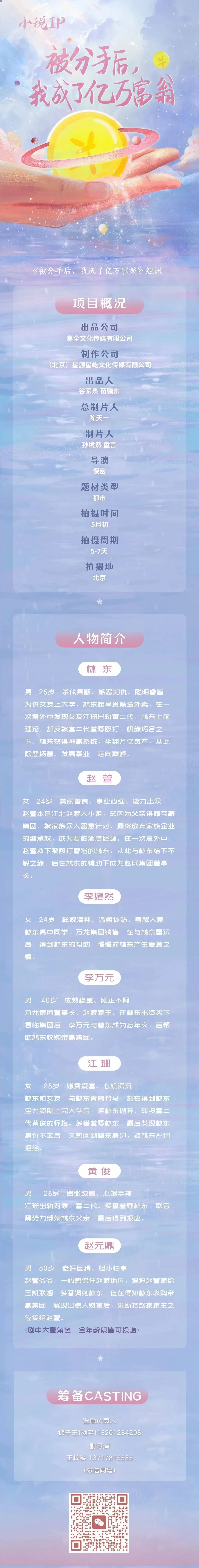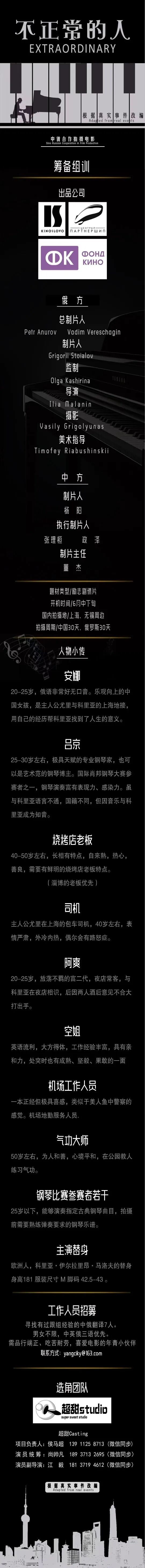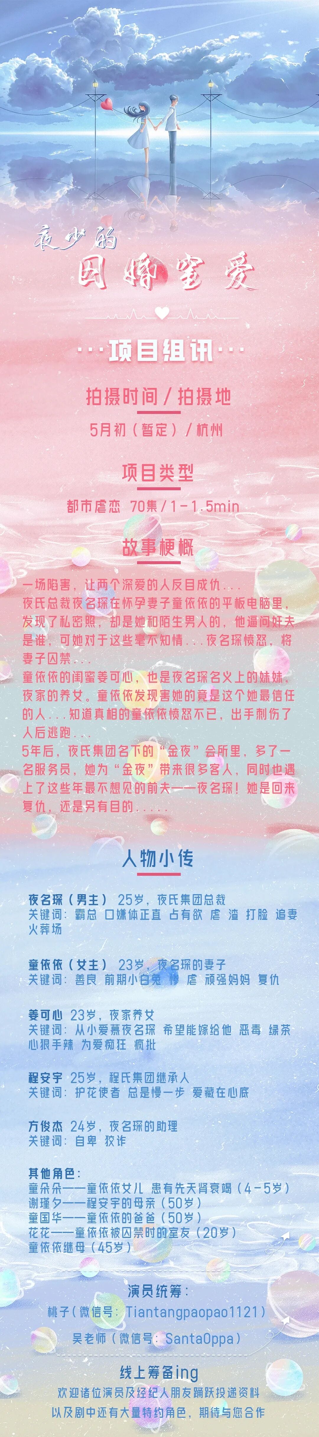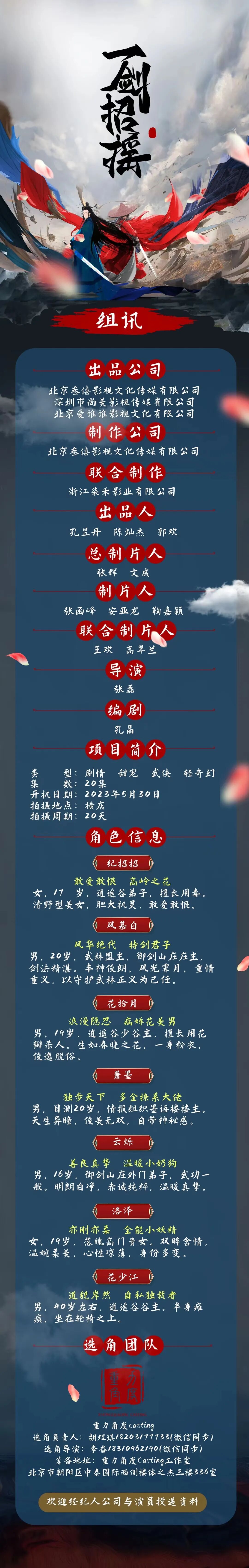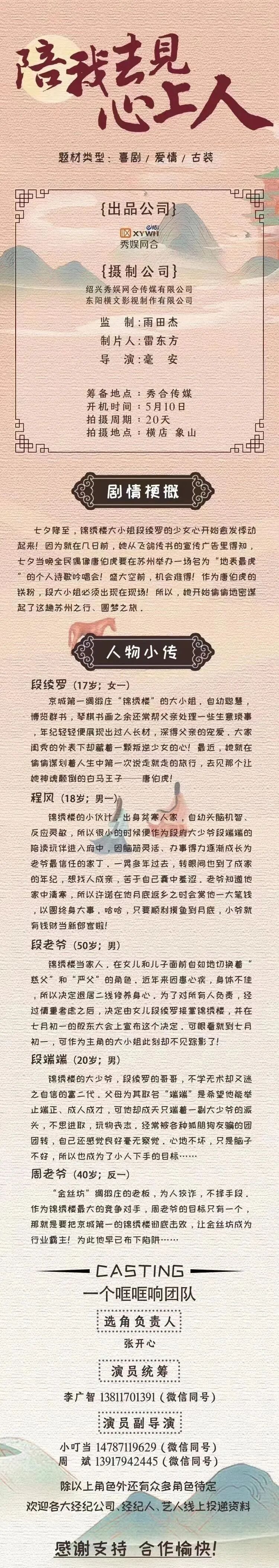 选角负责人:胡煜琪 18203177733(微信同步)