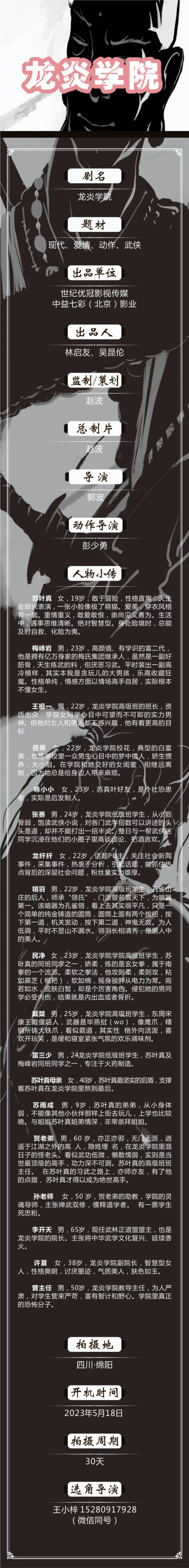 选角负责人:狮子王(刘平) 15201234208
