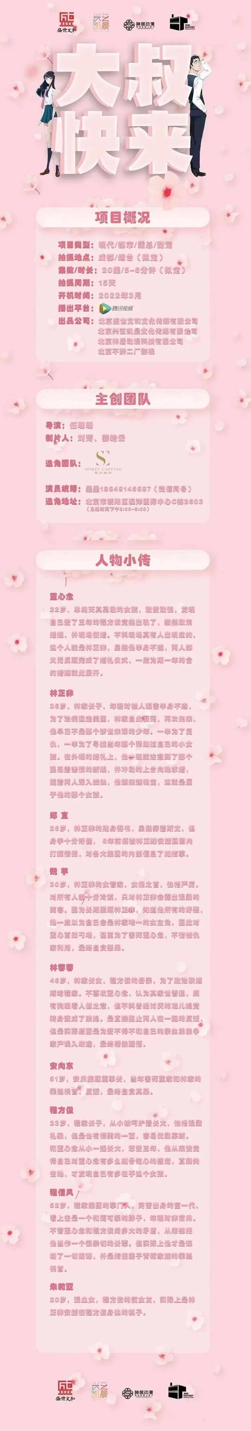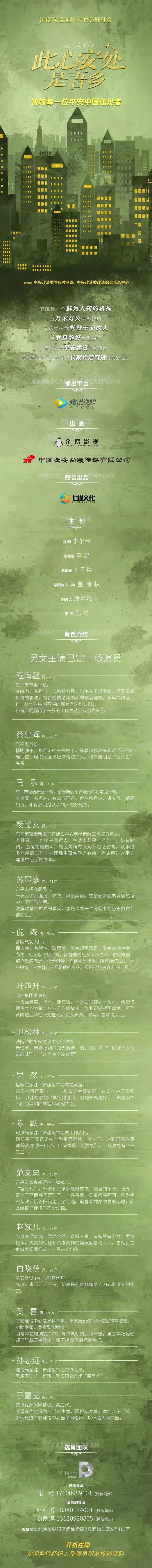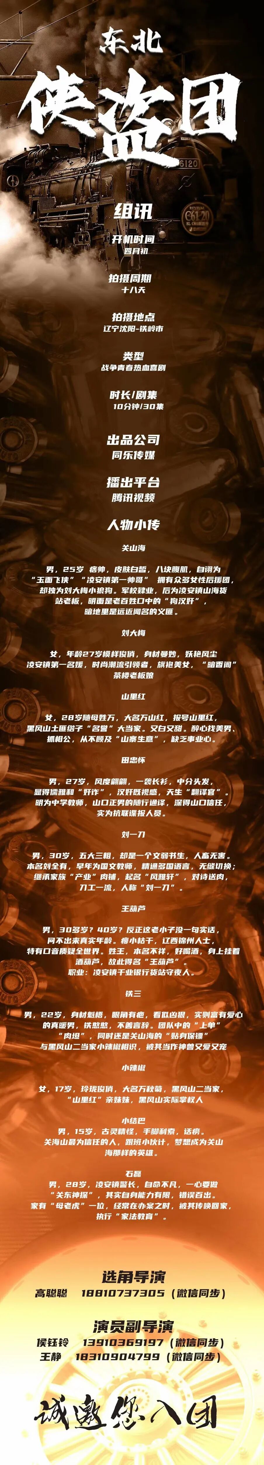 剧中角色众多,广招优秀演员,欢迎各位经纪人及演员老师投递资料!
