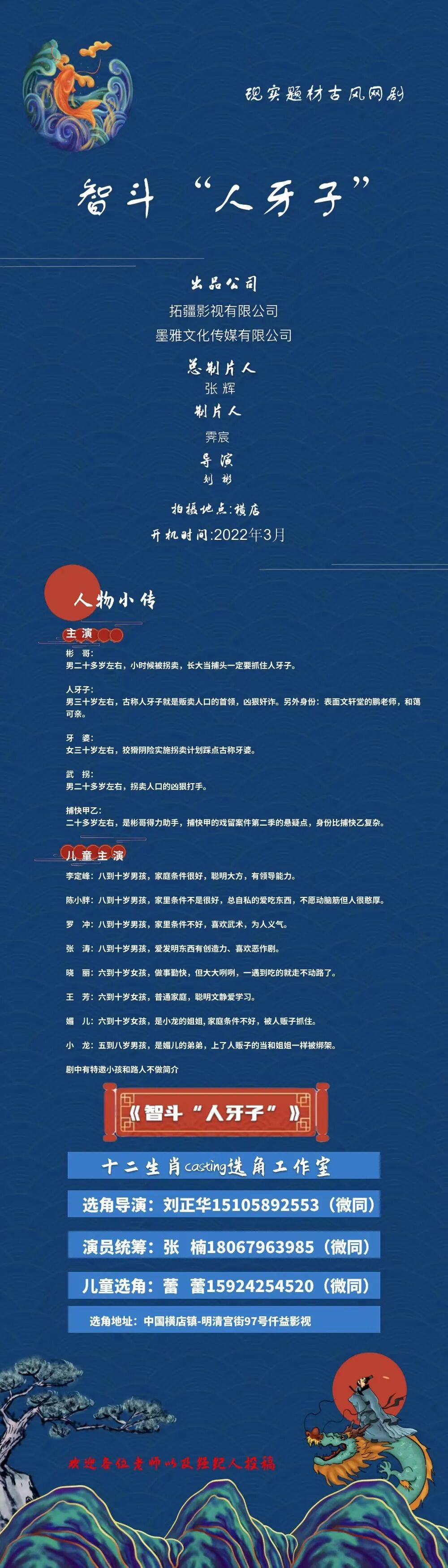 选角导演:刘正华 15105892553(微信同步)
