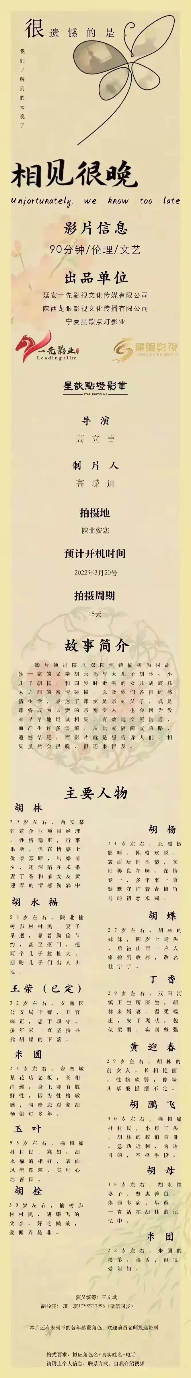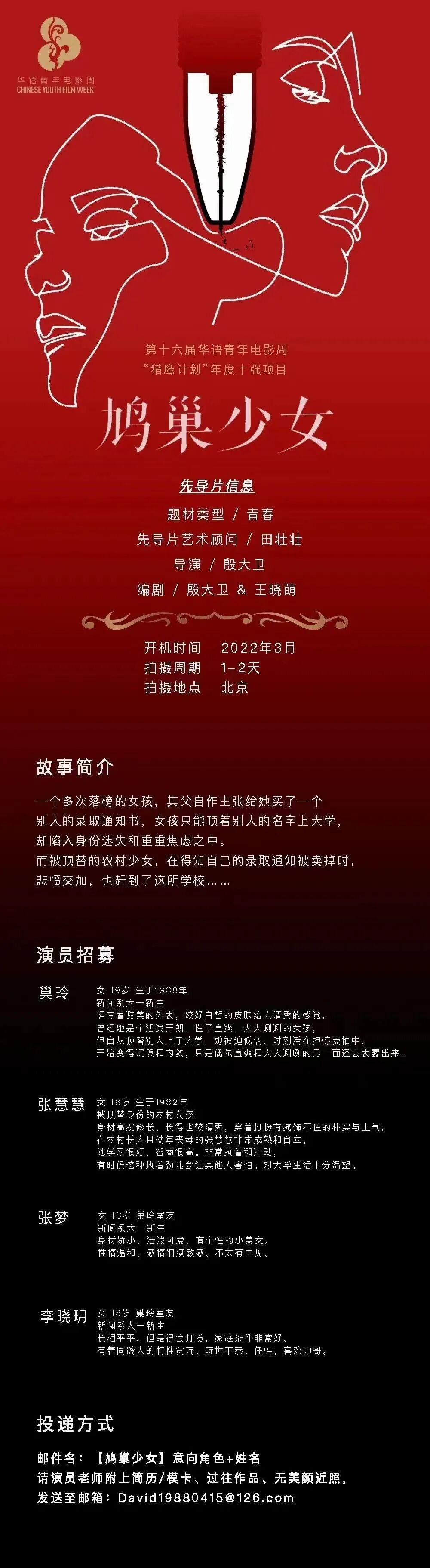 本片还有未列举的各年龄段角色,欢迎演员老师投递资料
