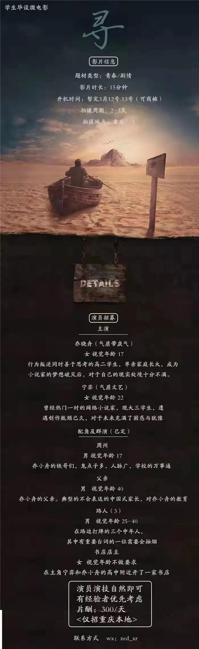 本栏目发布组讯由小编采集与业界共享,组讯如有变化请以实际情况为准。如果遇到剧组收费情况,请谨慎对待并私信官微@戏客Seeker,我们会公示问题组讯并及时处理。谢谢。