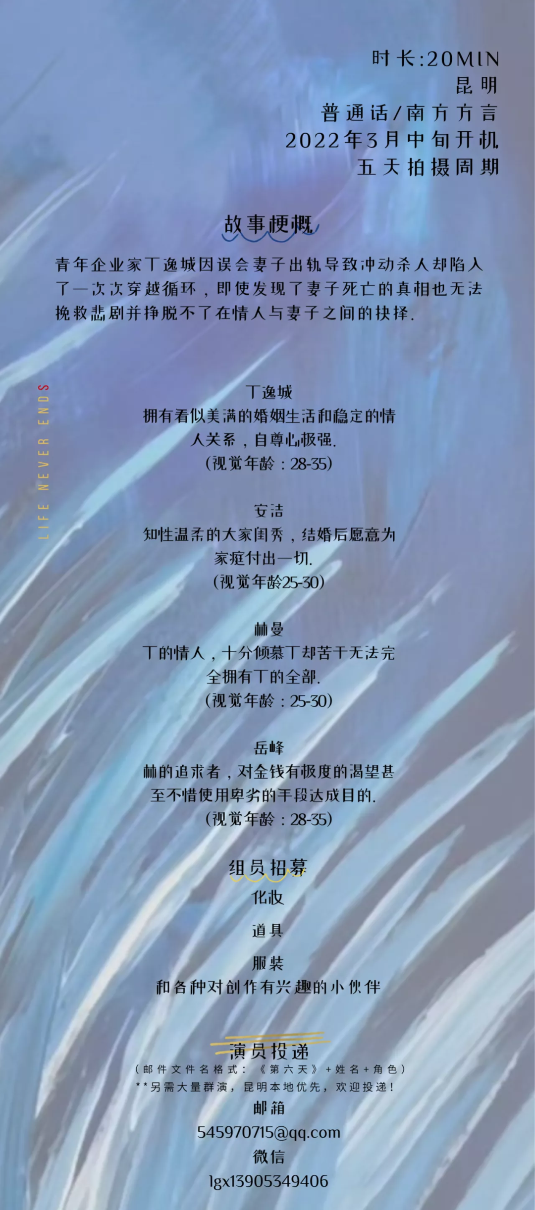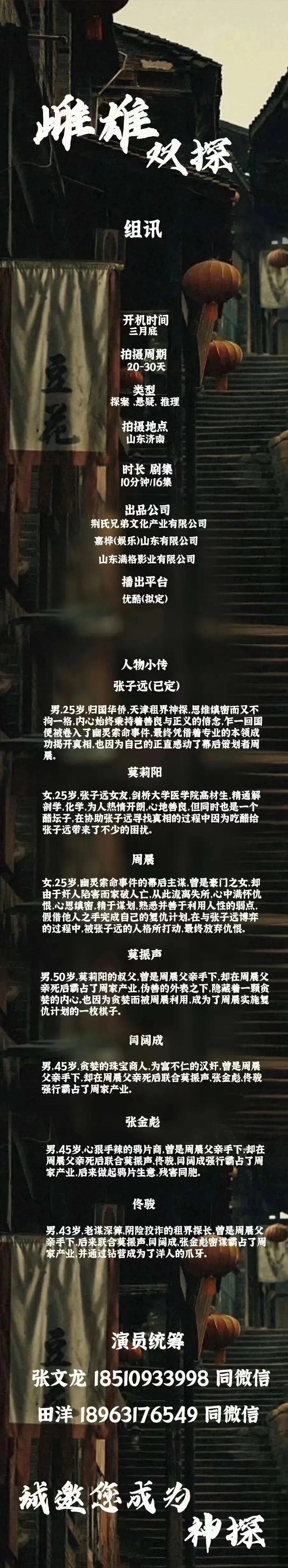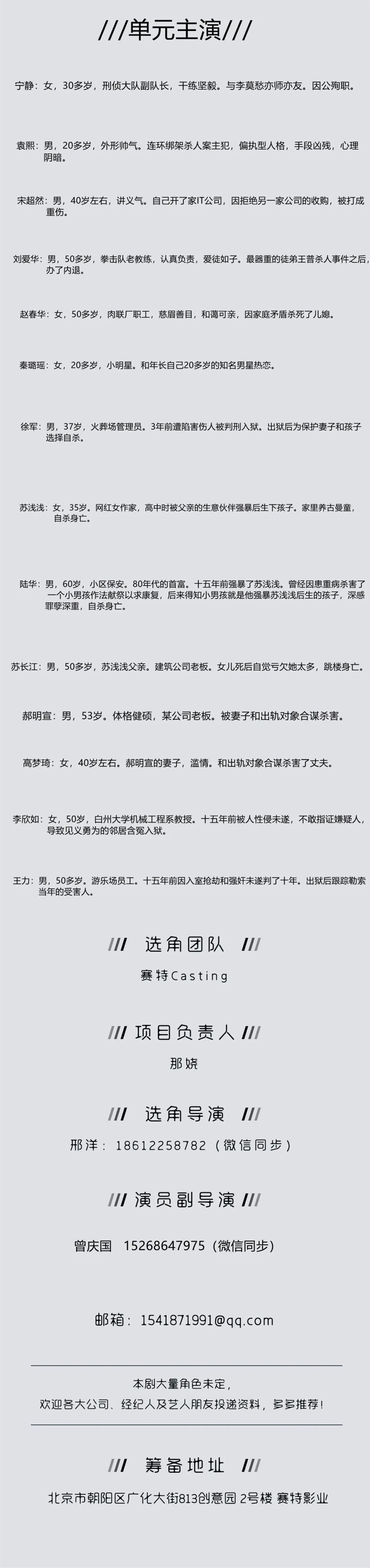 本剧大量角色未定,欢迎各大公司,经纪人及艺人朋友投递资料,多多推荐!