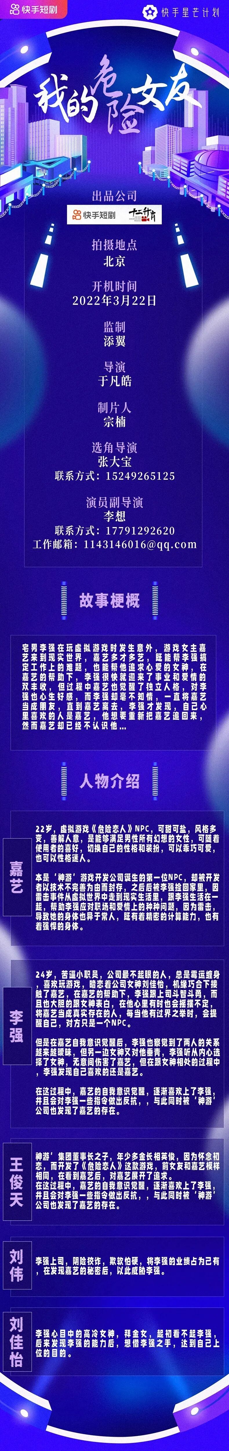 选角导演:王晓健 18801192521 (微信同步)