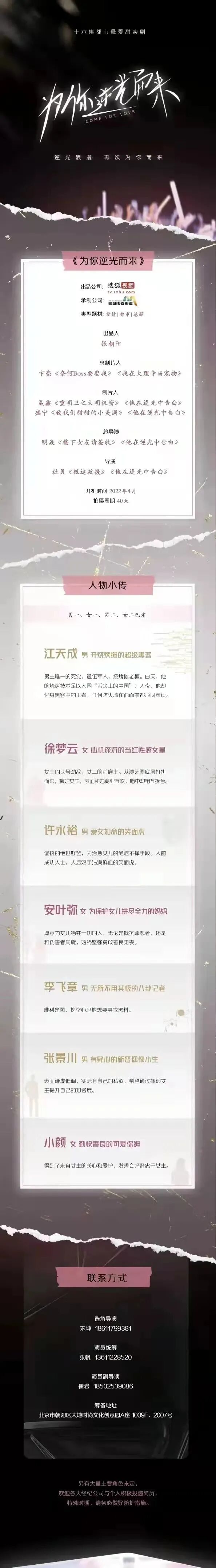 本栏目发布组讯由小编采集与业界共享,组讯如有变化请以实际情况为准。如果遇到剧组收费情况,请谨慎对待并私信官微@戏客Seeker,我们会公示问题组讯并及时处理。谢谢。