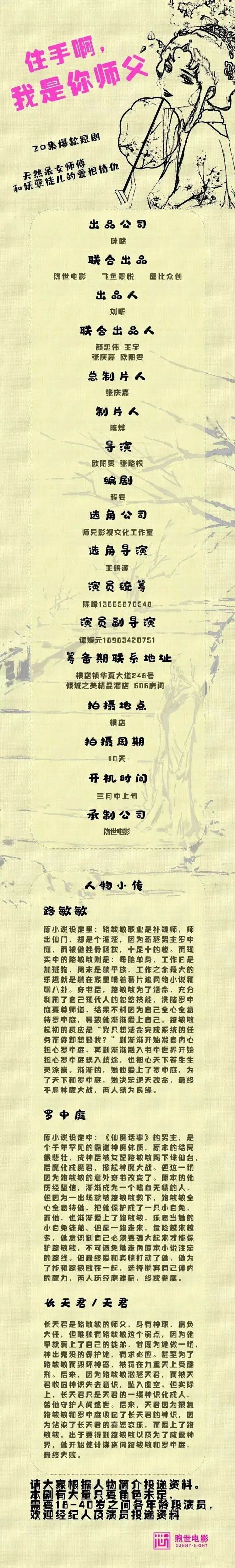角色众多,年龄分布广,欢迎各位经纪人及演员老师投递资料。