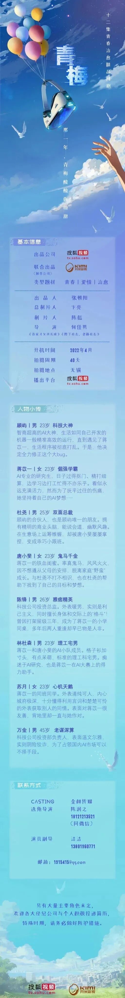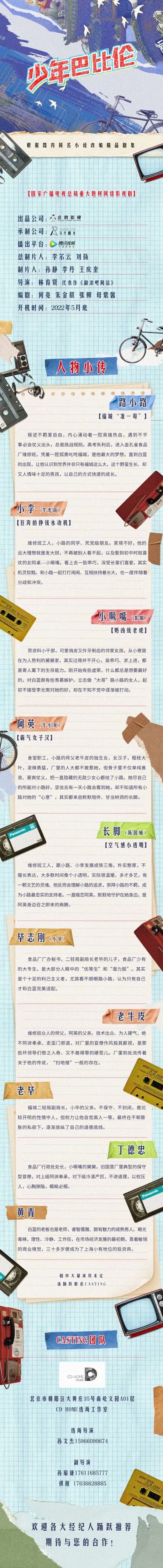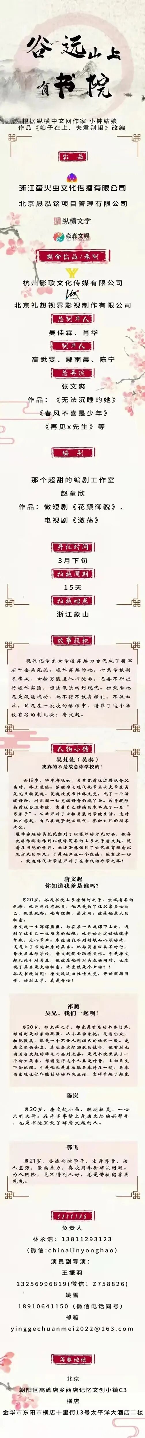 剧中有众多角色未定,欢迎广大经纪人及演员投递资料,期待与您的合作!