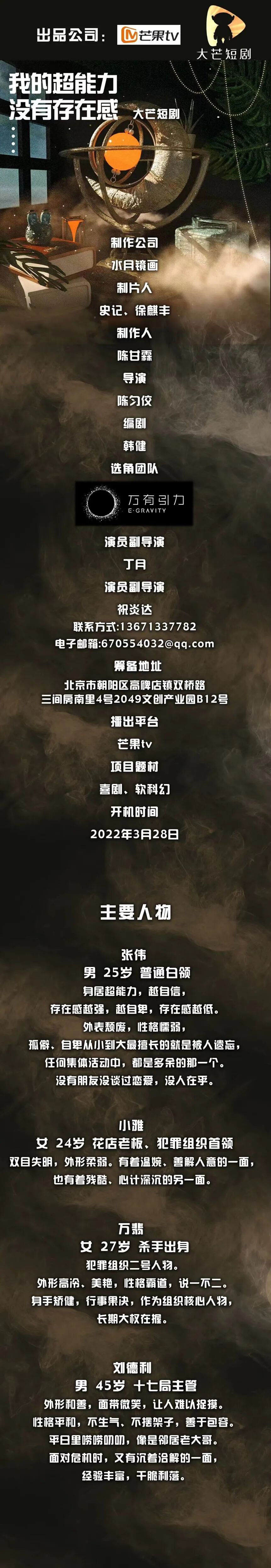 本栏目发布组讯由小编采集与业界共享,组讯如有变化请以实际情况为准。如果遇到剧组收费情况,请谨慎对待并私信官微@戏客Seeker,我们会公示问题组讯并及时处理。谢谢。