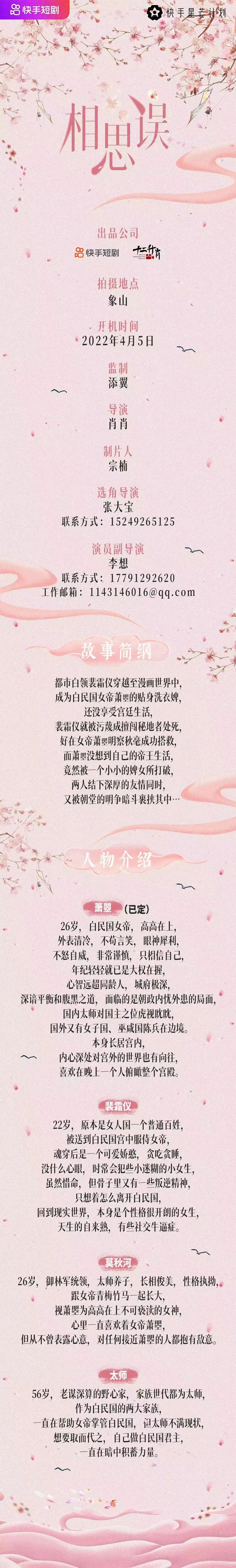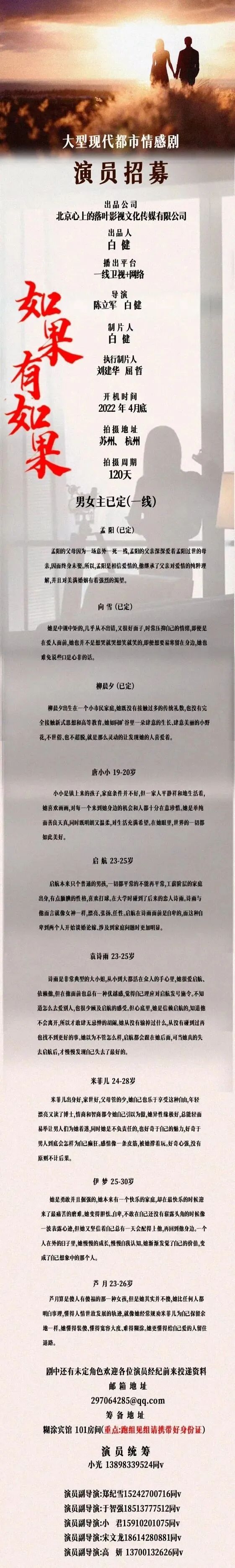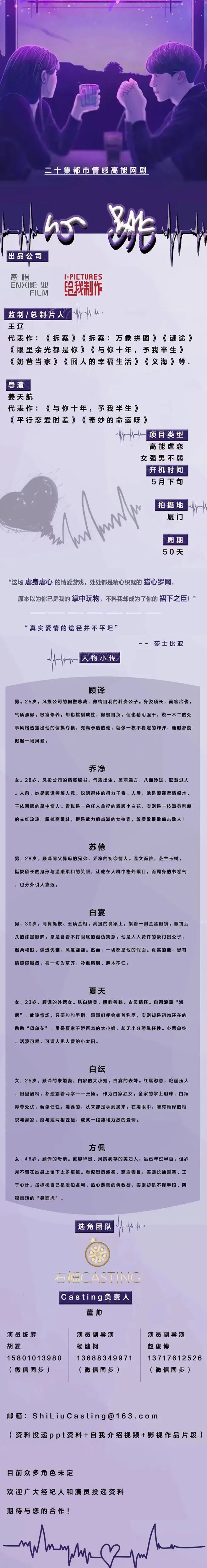 男女主已定一线,剧中还有大量未定角色,欢迎前来投递资料。