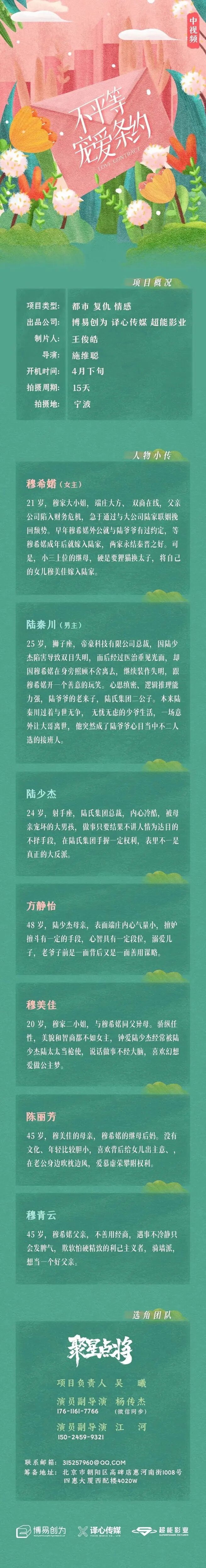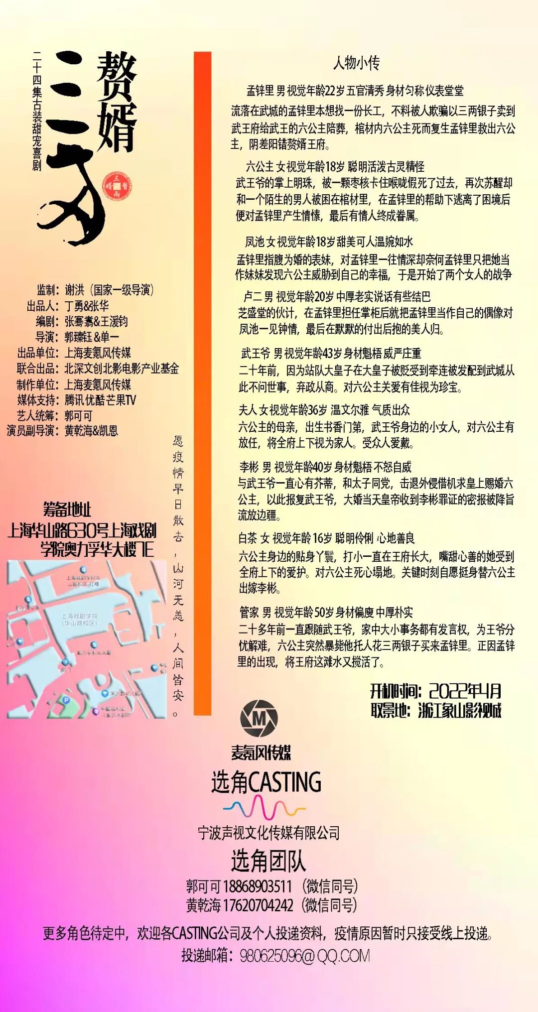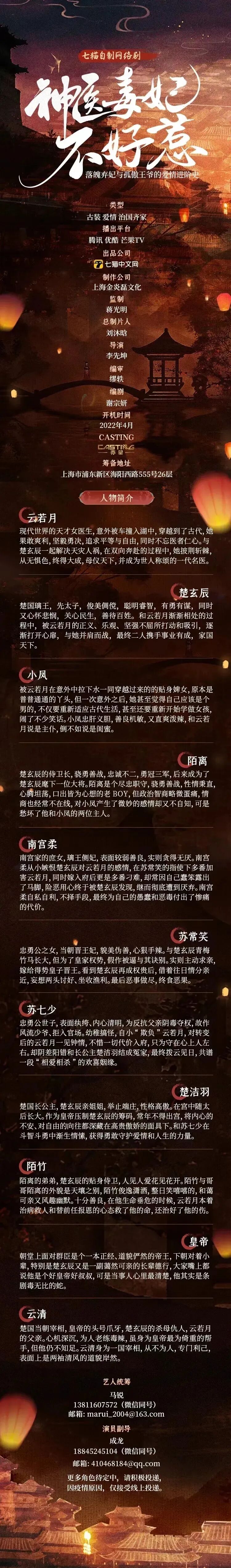 本剧大量角色未定,欢迎各大经纪公司及演员朋友提供资料,期待与您的合作。