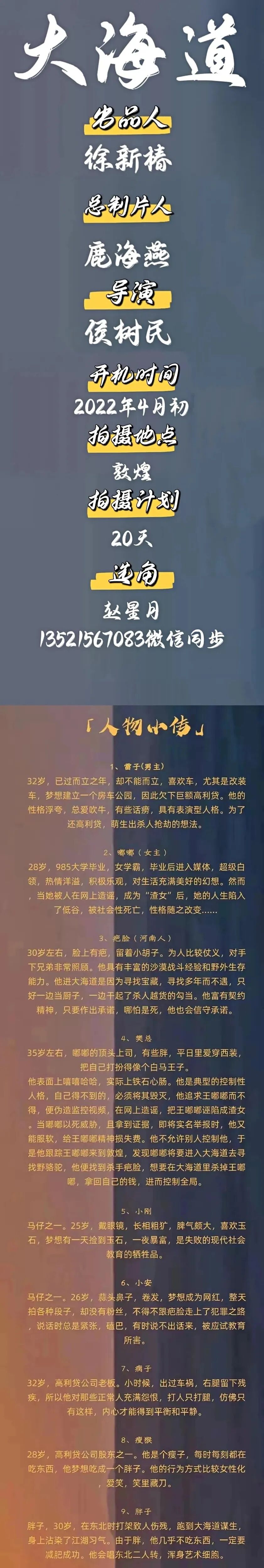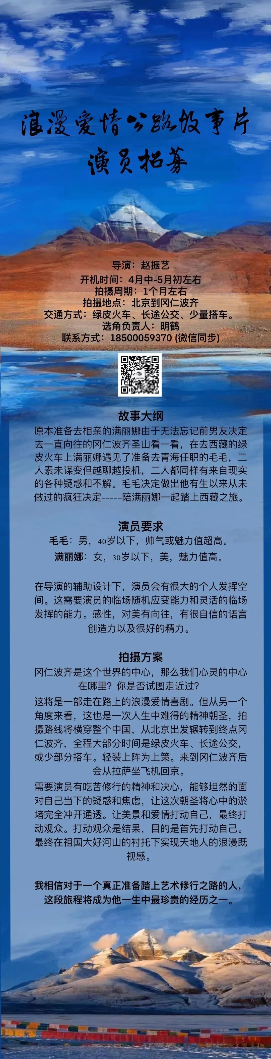 选角团队负责人:翟晓鸣 18610067201(微信同步)