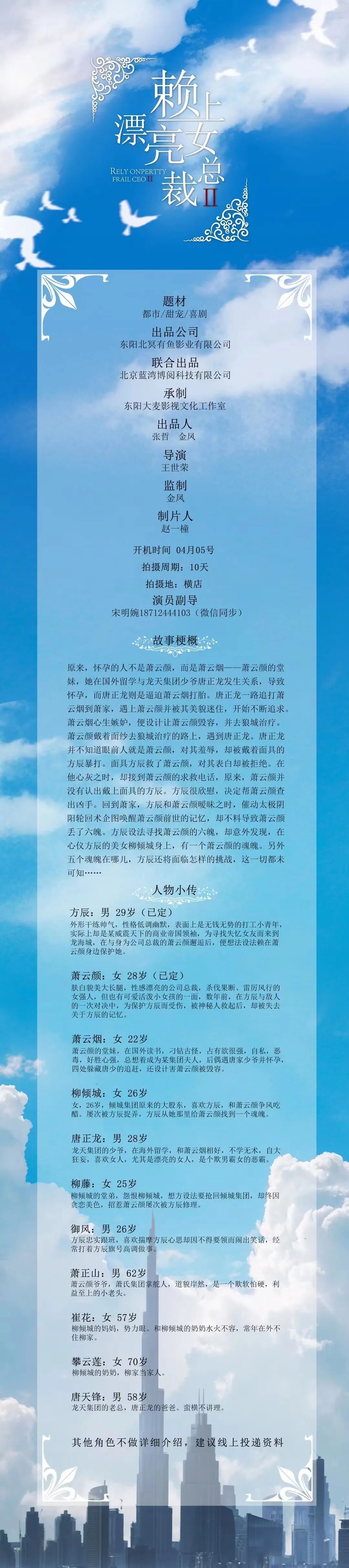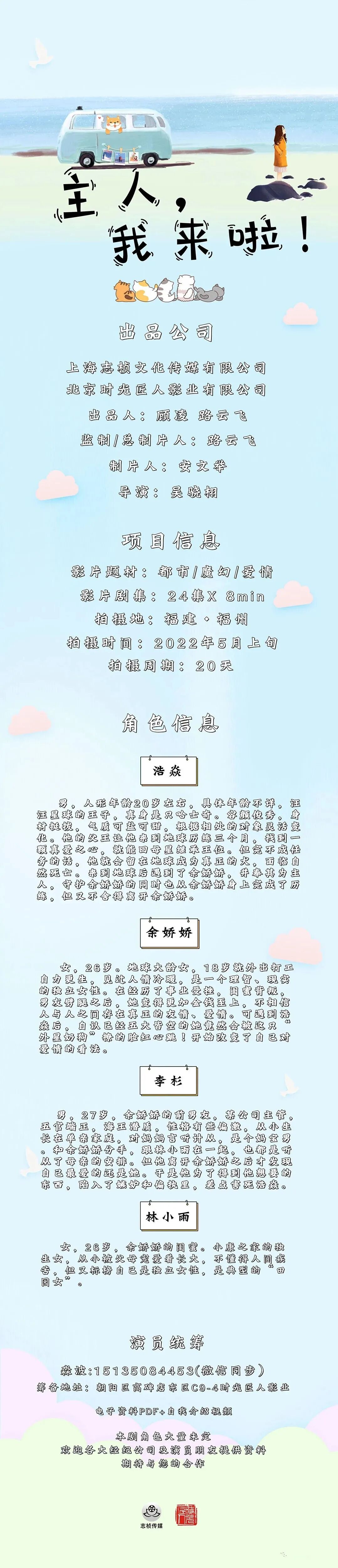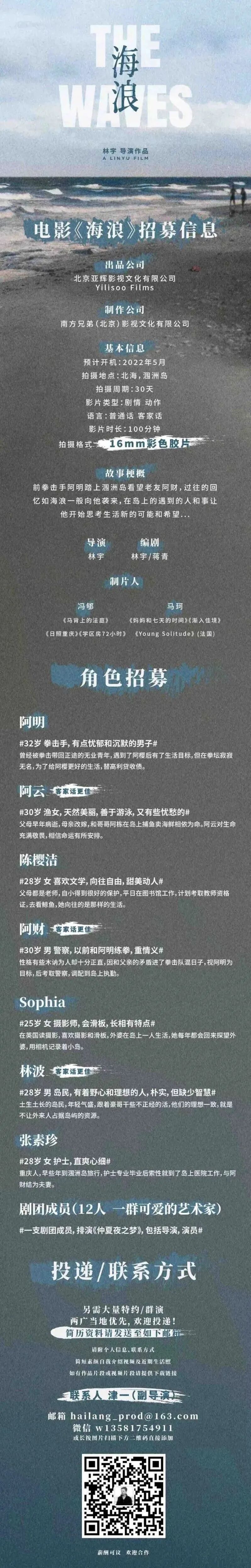 因疫情原因,现只接收线上投递资料,开机在即,另有大量角色需要演员。欢迎各位经纪人及演员朋友投递资料。