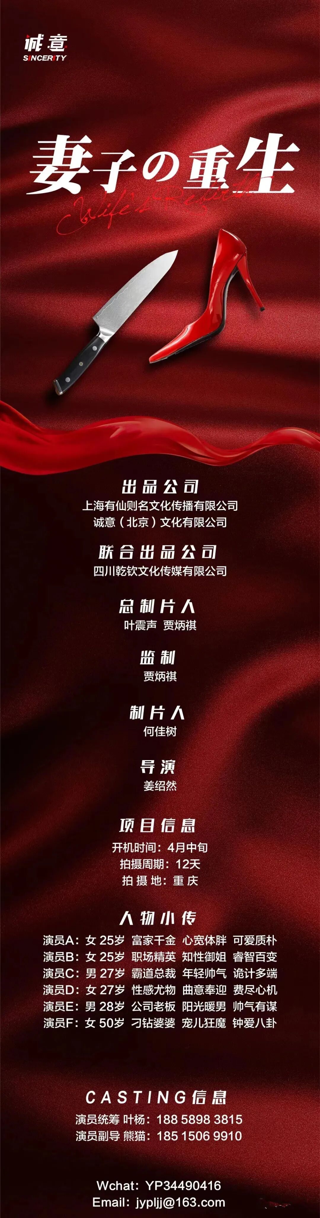 本剧大量角色未定,欢迎各大经纪公司及演员朋友提供资料,期待与您的合作。