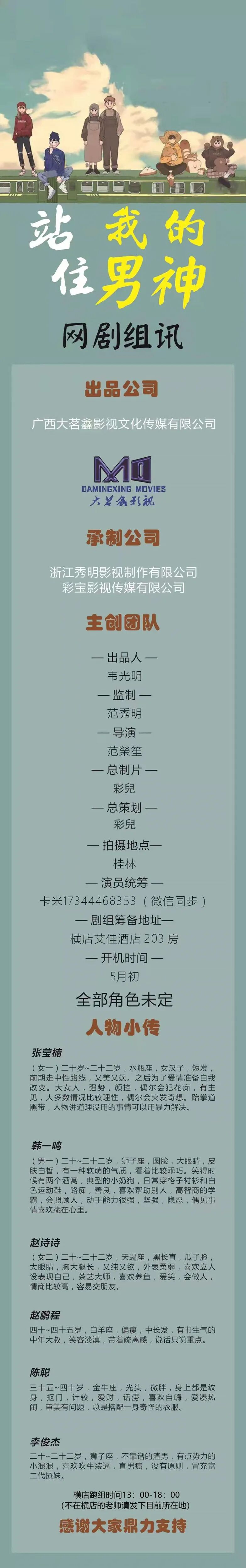 本栏目发布组讯由小编采集与业界共享,组讯如有变化请以实际情况为准。如果遇到剧组收费情况,请谨慎对待并私信官微@戏客Seeker,我们会公示问题组讯并及时处理。谢谢。