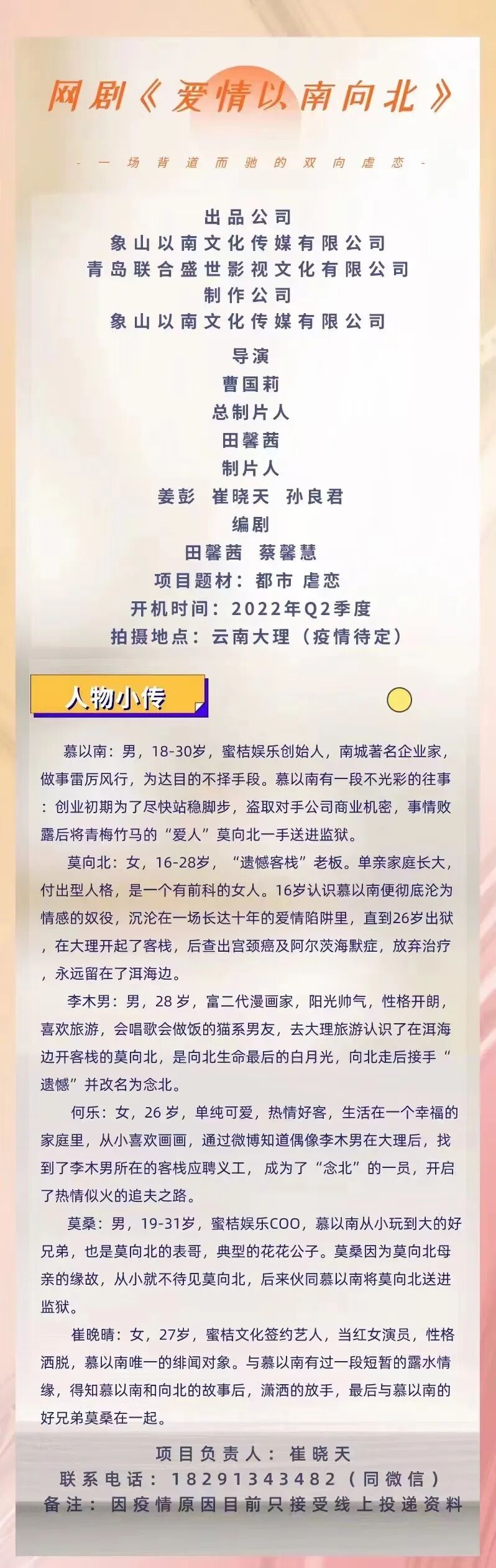 欢迎各大经纪公司经纪人演员朋友投递资料,期待与您合作!