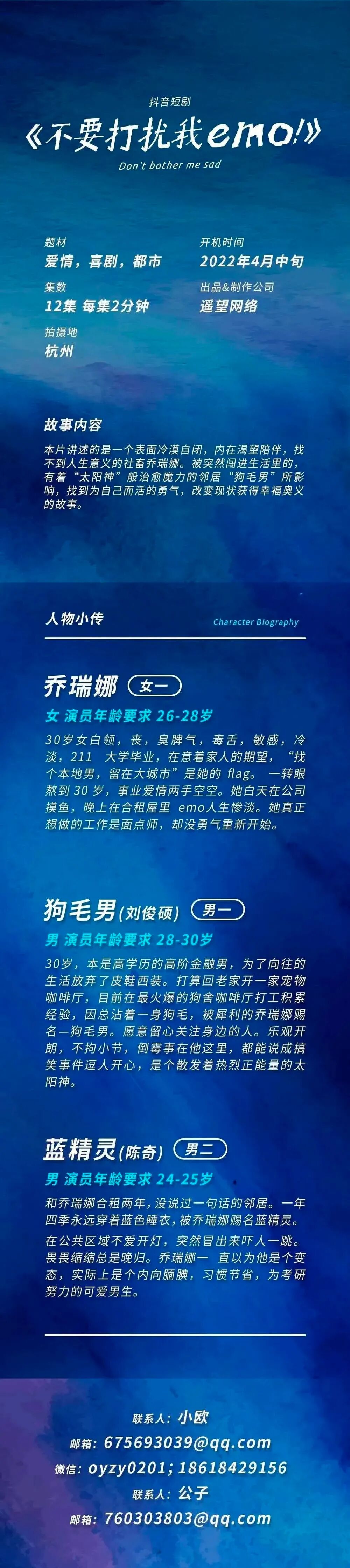 本栏目发布组讯由小编采集与业界共享,组讯如有变化请以实际情况为准。如果遇到剧组收费情况,请谨慎对待并私信官微@戏客Seeker,我们会公示问题组讯并及时处理。谢谢。