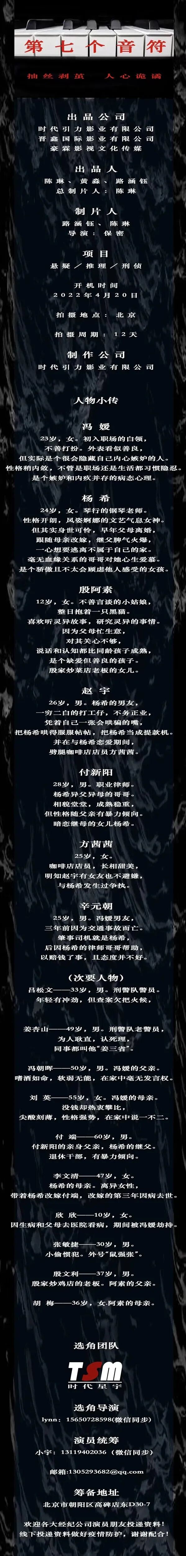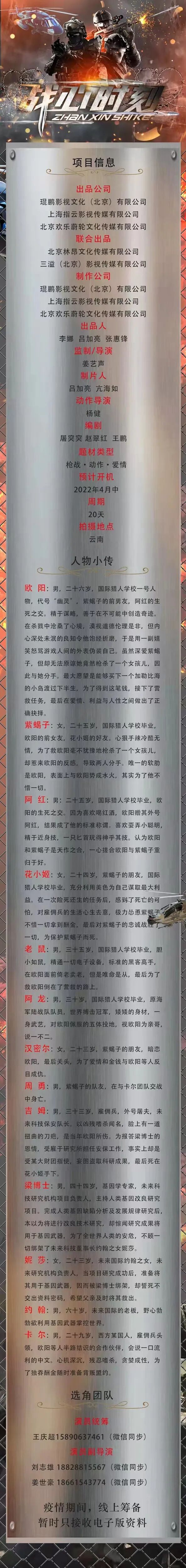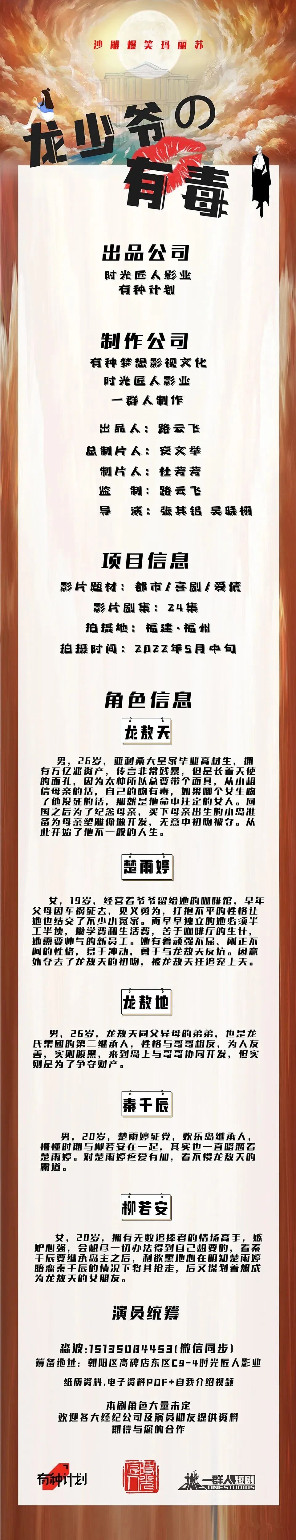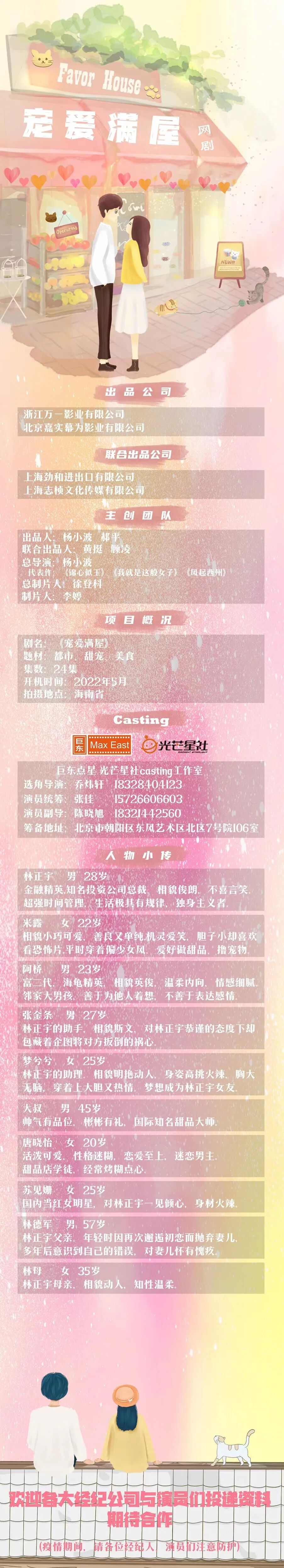 本剧角色大量未定,欢迎各大经纪公司及演员朋友提供资料,期待与您的合作