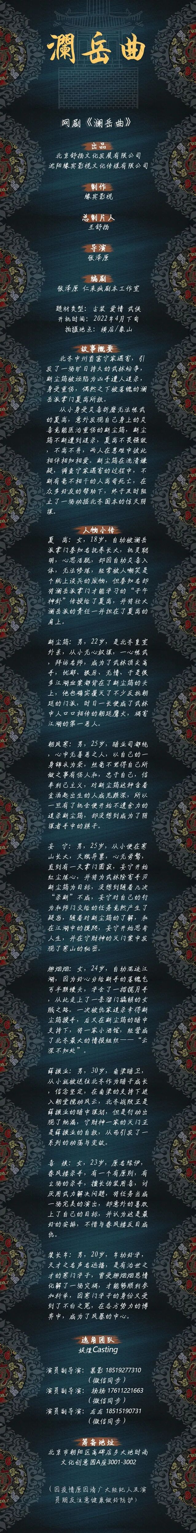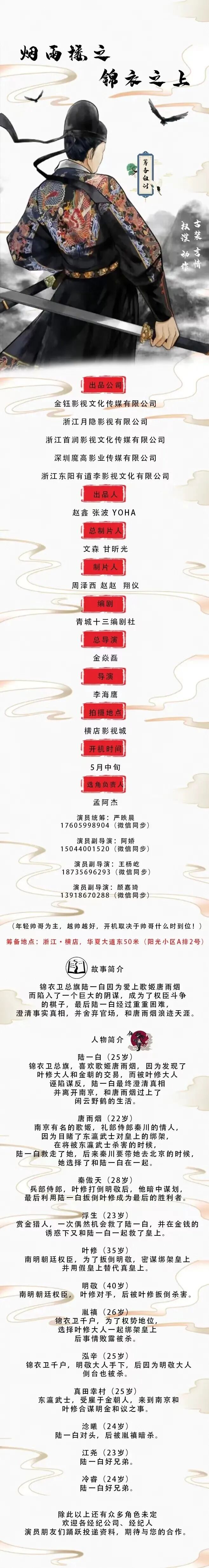 选角导演:吕廷阳 15600187888(微信同号)