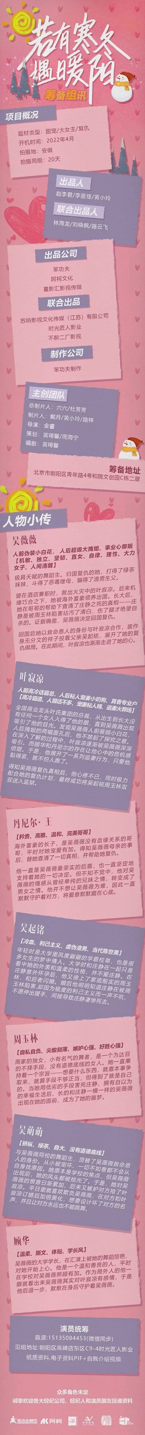 众多角色未定,欢迎各经经公司、经纪人演员朋友们踊跃投递资料,期待与您的合作。