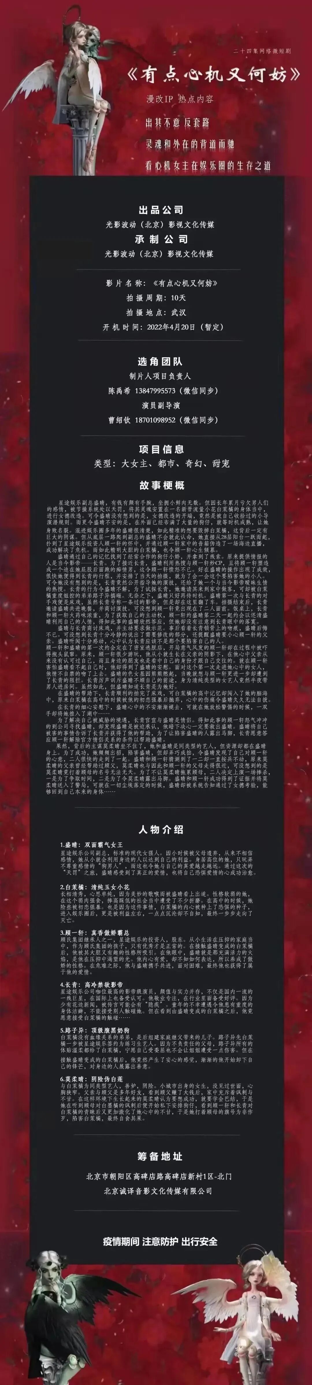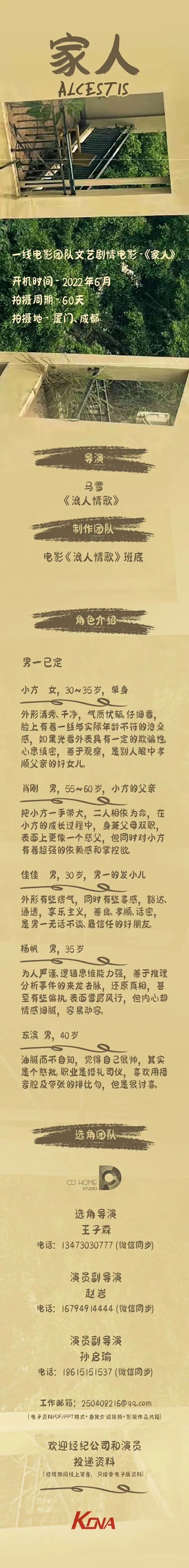 疫情原因目前线上筹备,欢迎经纪公司、经纪人、专业演员发送电子版资料