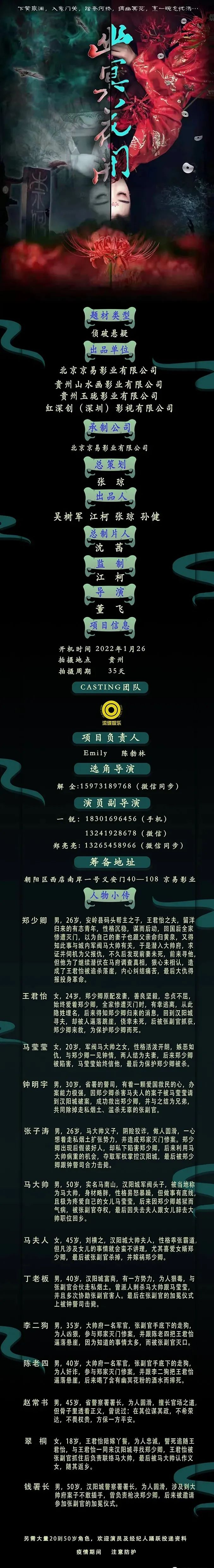本栏目发布组讯由小编采集与业界共享,组讯如有变化请以实际情况为准。如果遇到剧组收费情况,请谨慎对待并私信官微@戏客Seeker,我们会公示问题组讯并及时处理。谢谢。