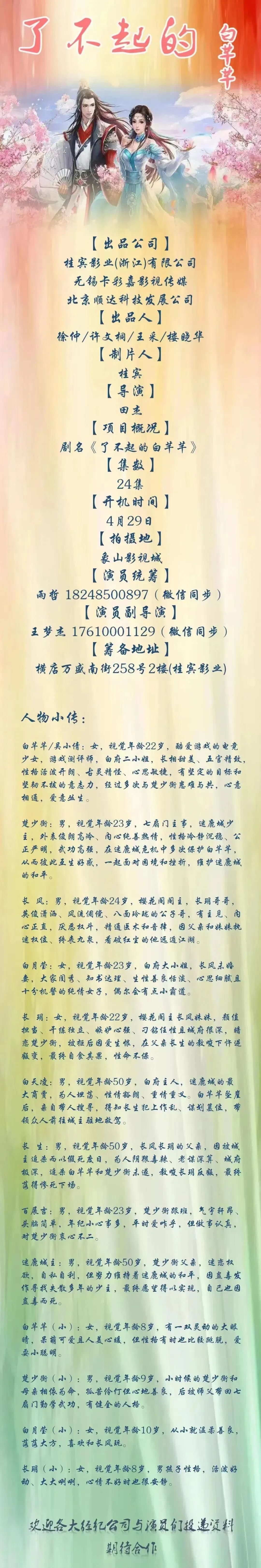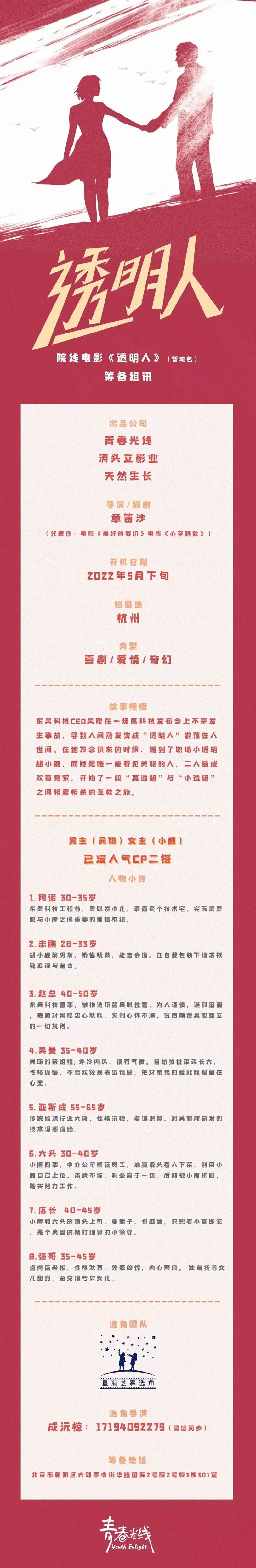 选角负责人:邵笑18901020109(微信同号)