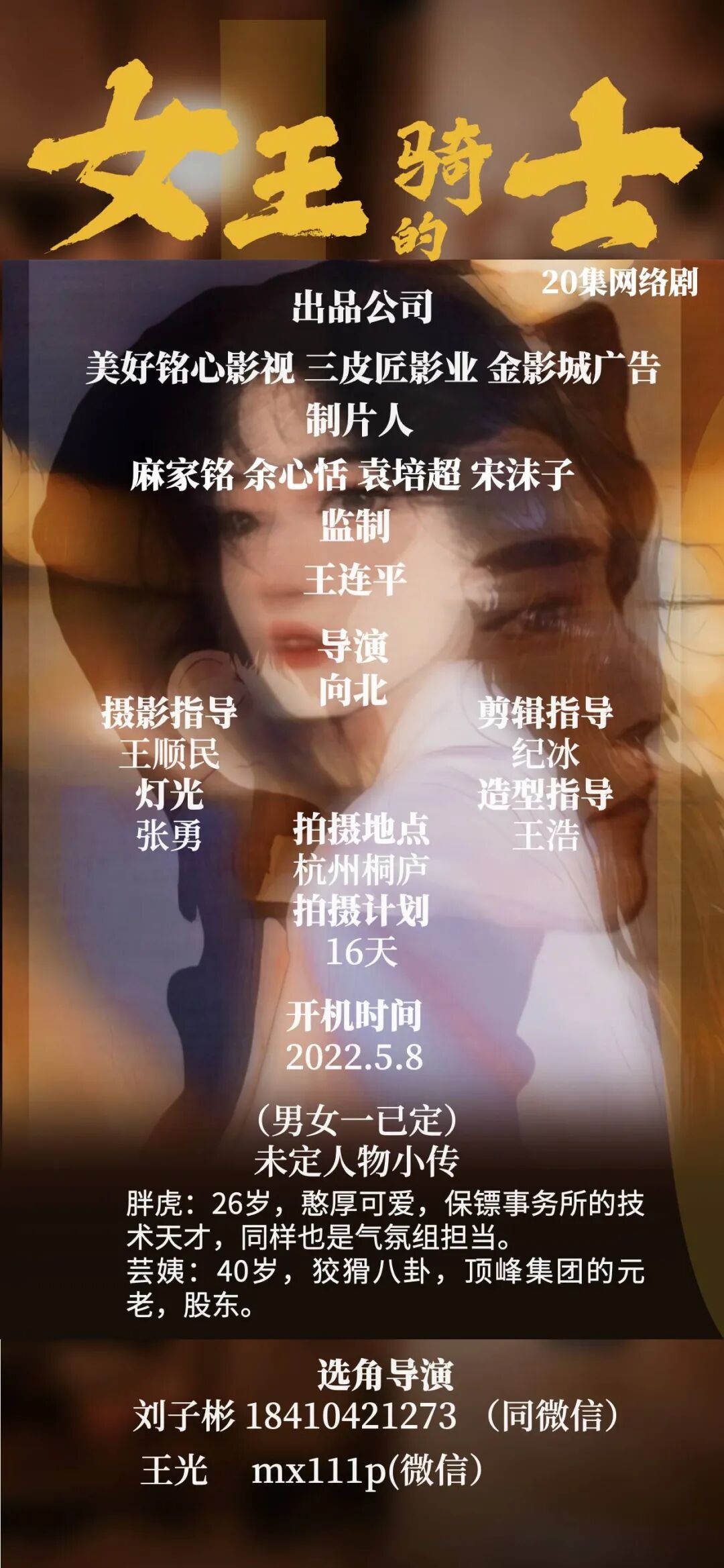 选角导演:王光 mx111p(微信)