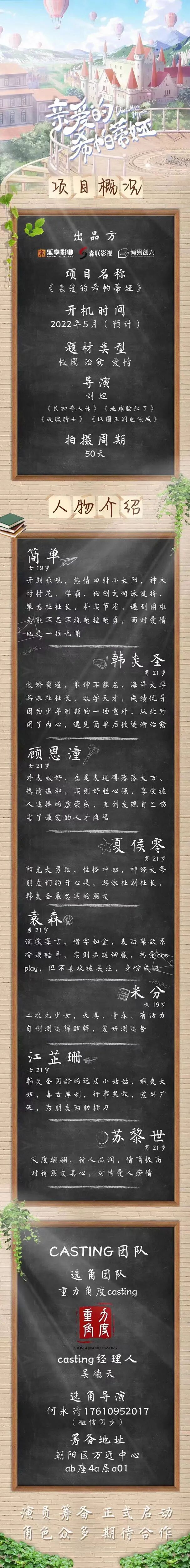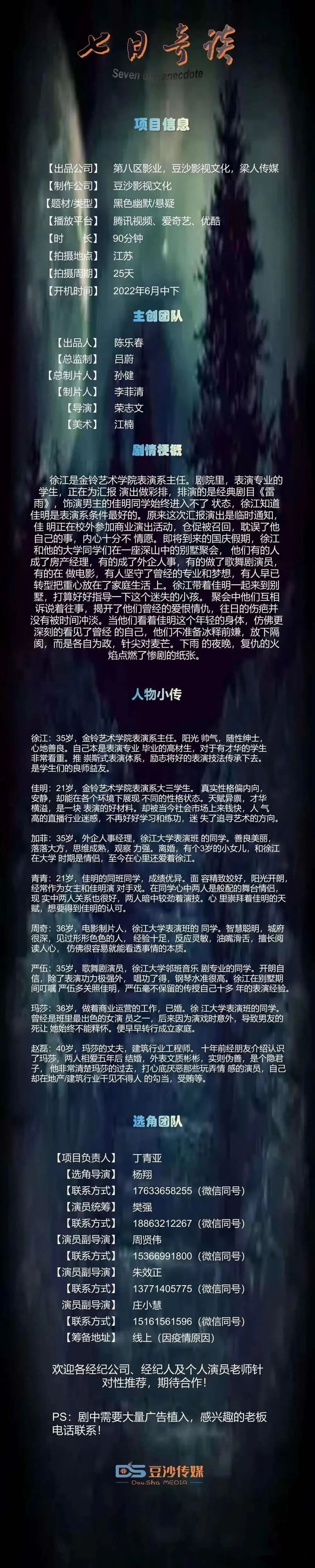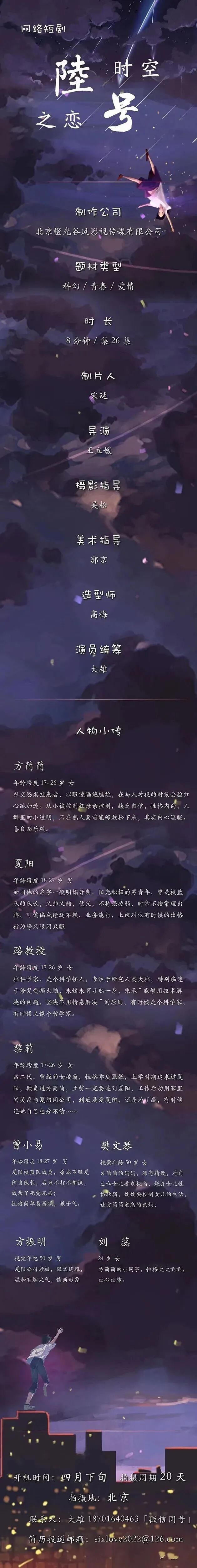 因疫情原因线上筹备,欢迎各经纪公司、经纪人及个人演员老师针对性推荐,期待合作!