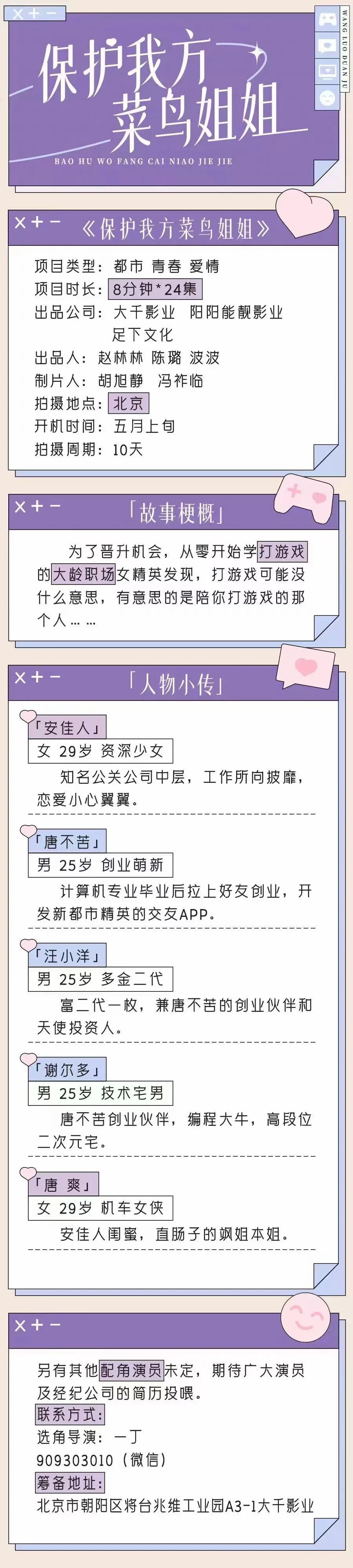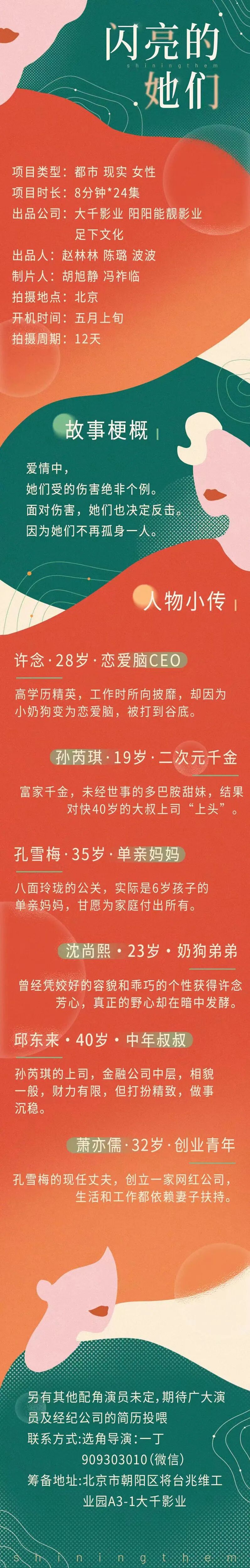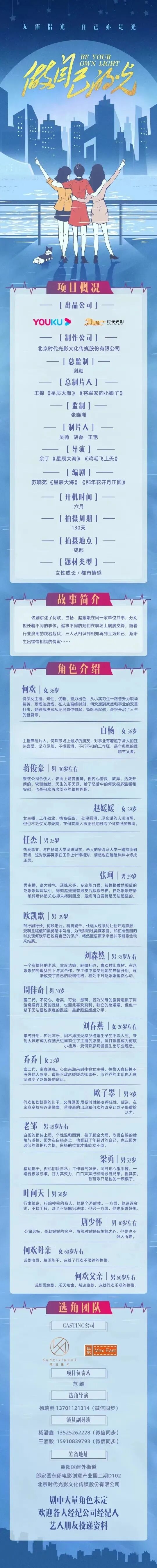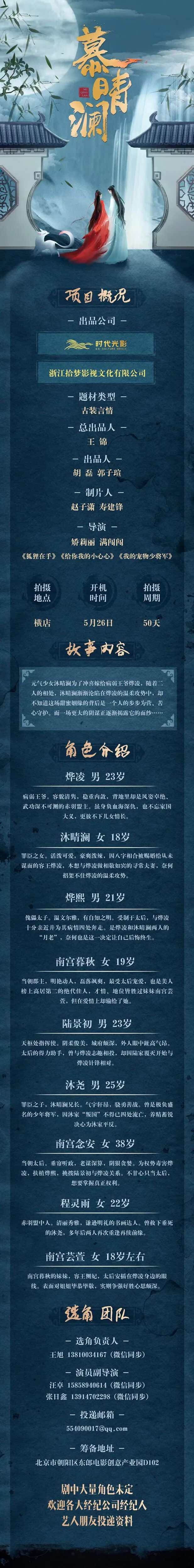剧中大量角色未定,欢迎各大经纪公司经纪人、艺人朋友投递资料