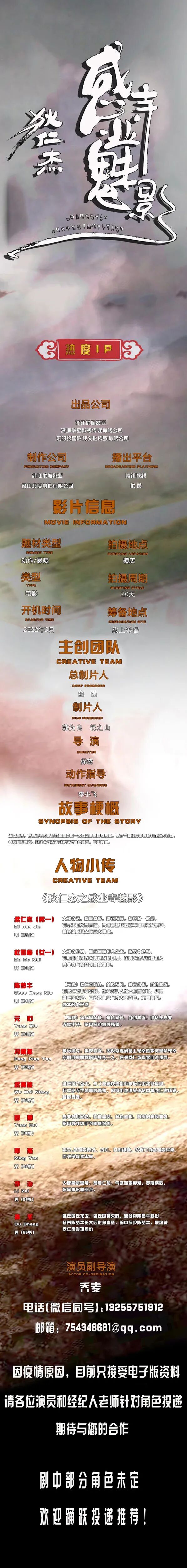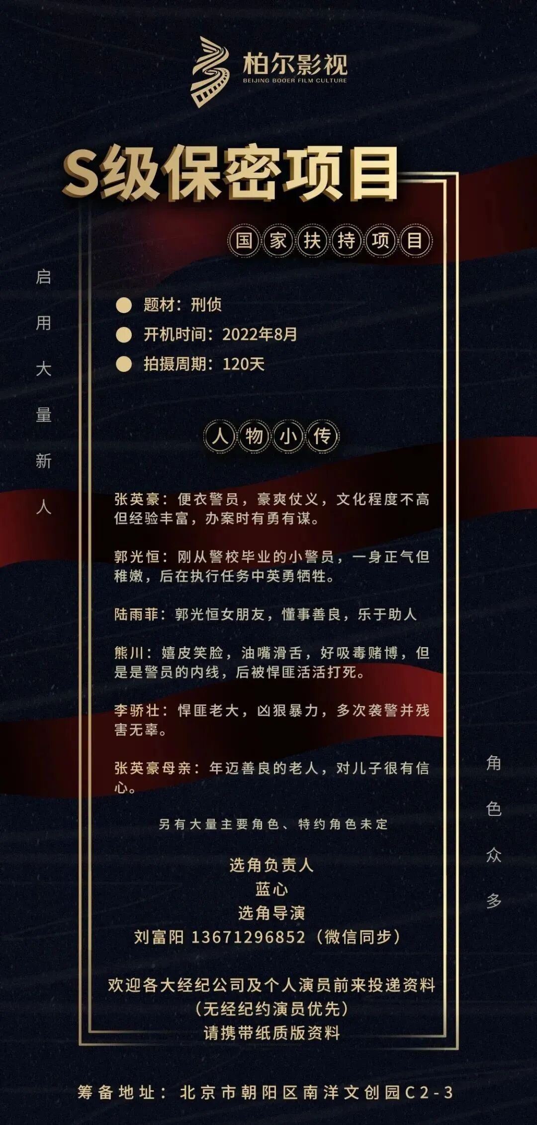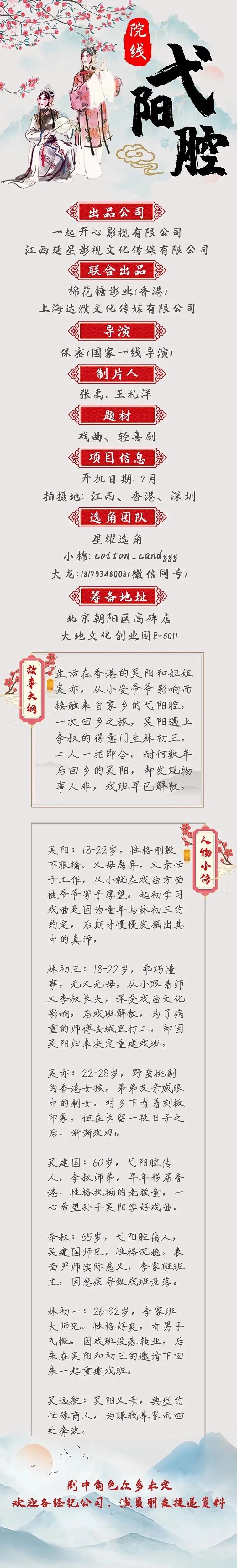 剧中角色众多未定,欢迎各经纪公司、演员朋友投递资料。