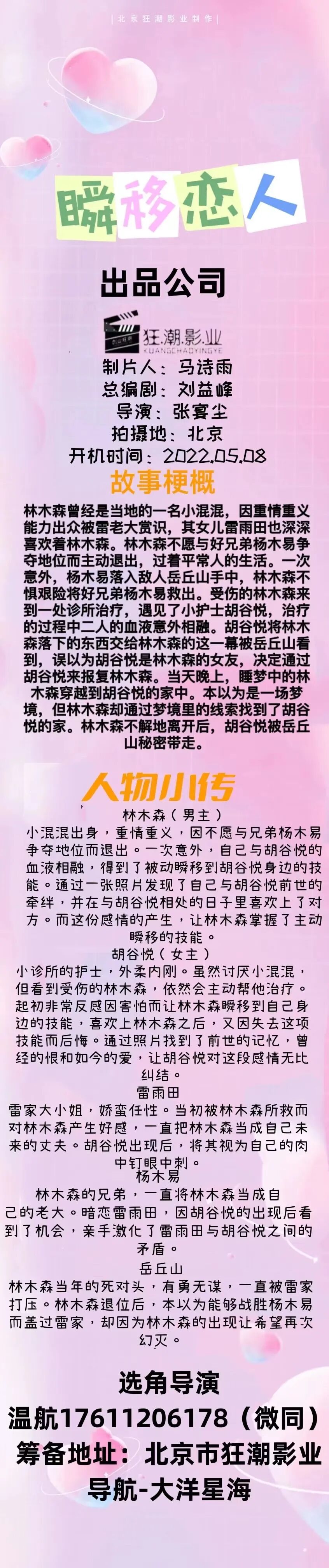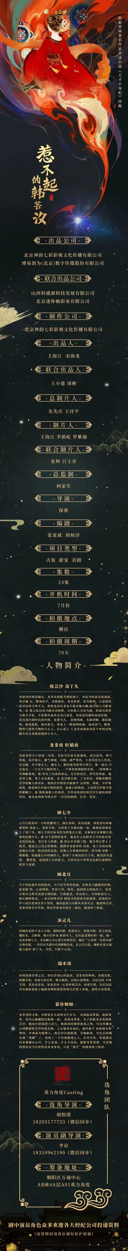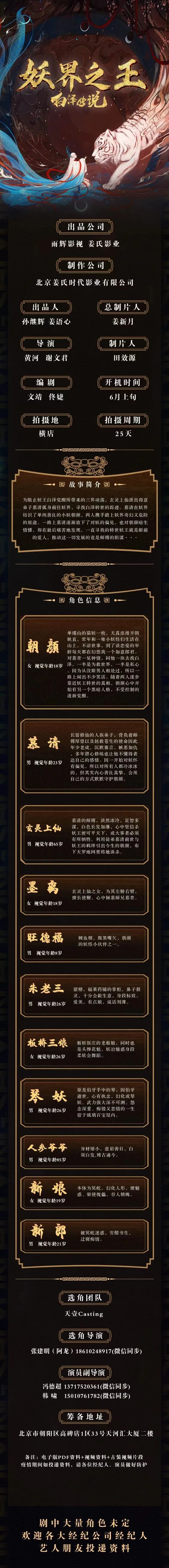 剧中演员角色众多,欢迎各大经纪公司投递资料(疫情期间请各位做好防护措施)