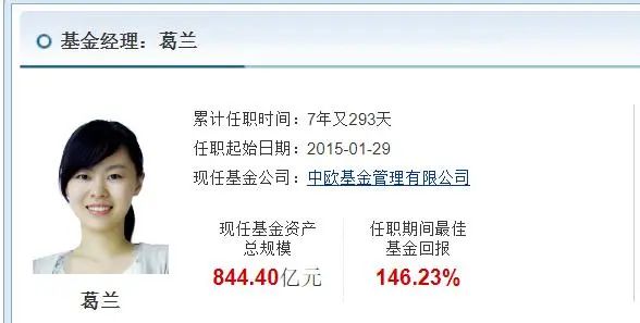 2015年,葛兰在中欧基金任基金经理,2019年医药行业站上风口,她管理的中欧医疗健康基金一飞冲天。2021年底,其基金规模高达1103.39亿,和“坤坤”一起深受基民追捧。
