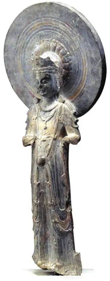 蝉冠菩萨像历尽千年岁月,虽然出土时即断为三节,双手小臂缺失,身上还有几处破损,但仍难掩其俊秀之姿。因此它又有“东方维纳斯”的美誉。