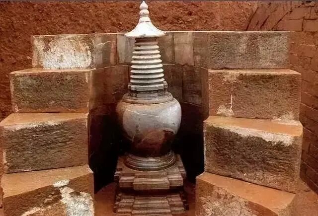 首先是一座覆钵式喇嘛塔,这塔本应建在地上,但此墓却奇怪地放在了墓道中,也是一大疑团。其次,就是金刚杵、金铃等法器以及一套朱批佛经,这些都显示了墓主人是一位信佛人。