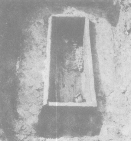 这座古墓基坑口大底小,四壁斜直平滑。基坑填土上部为黄褐色五花土,下部为青灰泥,填土都经过了夯筑,但因为时间过于古早,墓上方又是水耕地,所以地表几乎没有痕迹。