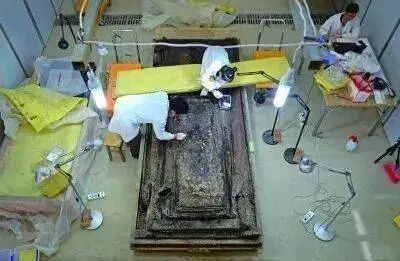 这个古棺就是后来走红网络的考古界第一网红:海昏侯的棺椁。当年为了保护文物,政府专门修建了文保实验室,将十吨重的棺椁整体打包进实验室,以低氧的环境确保古尸骸等文物不因环境的突然改变而氧化腐朽。