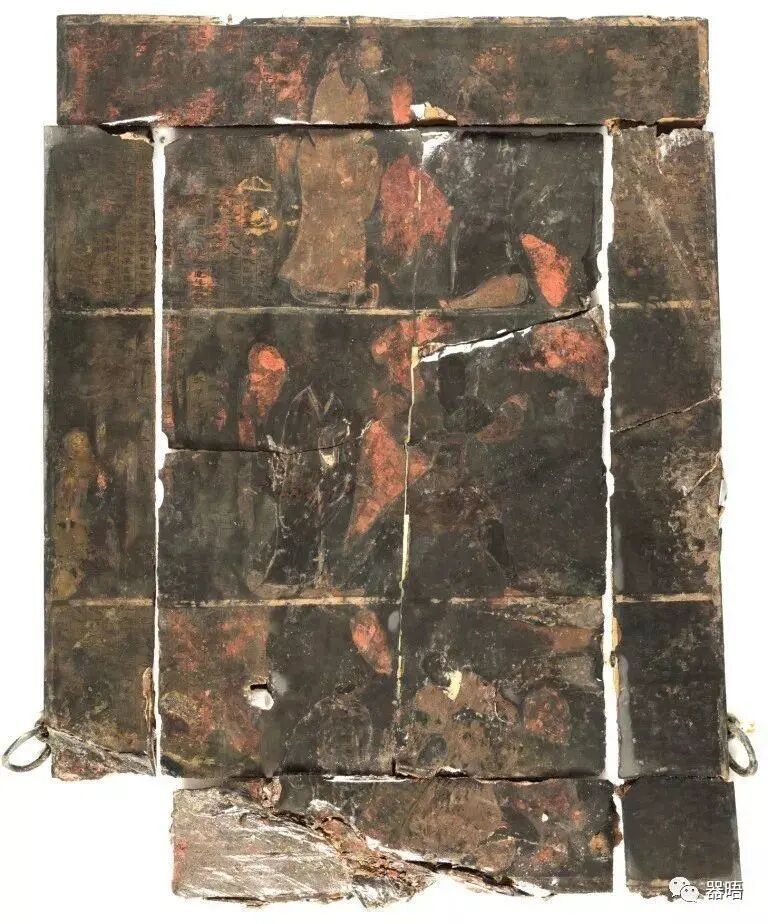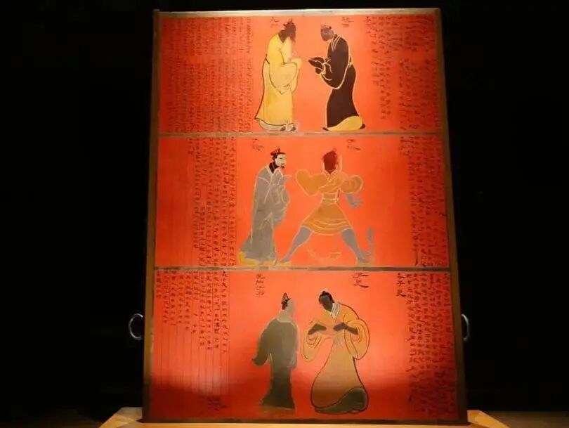 但放下这带镜屏风的功能性不提,咱们还是先关注这上面的图画和文字,而在之后的辨认中,专家们发吃一惊,经过清理,这屏风上竟然发现了人物像和题字,题字部分“孔子”“颜回”“叔梁纥”清晰可辨。