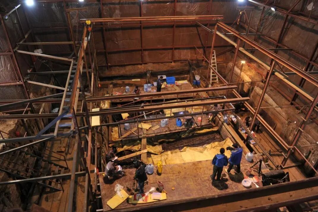 说到海昏侯墓,这可真是新时代考古界的一朵奇葩。2011年,海昏侯墓地遭遇“摸金校尉”的侵扰,被打穿了封土与夯土,在木棺椁上挖了一个大洞。但因为墓穴因早年间的地震结构遭到破坏、长期处于水淹的状态,这才让盗墓贼没有讨到便宜。