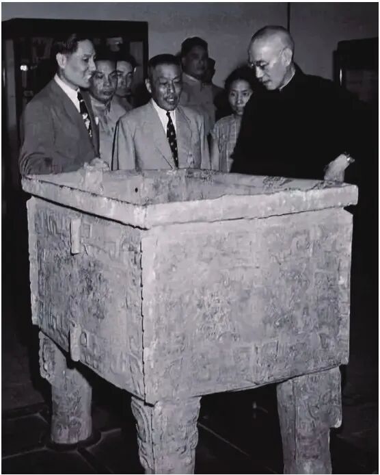 1948 年,中央博物院筹备处与故宫博物院在南京联合举办展览,这个鼎首次公开展出,蒋介石亲临参观并在鼎前留影。这鼎一下子出名了。