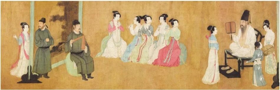 《韩熙载夜宴图》共有五个段落,包括听乐、观舞、暂歇、清吹和散宴,是一个完整的韩府夜宴过程。