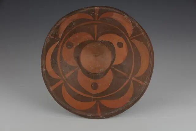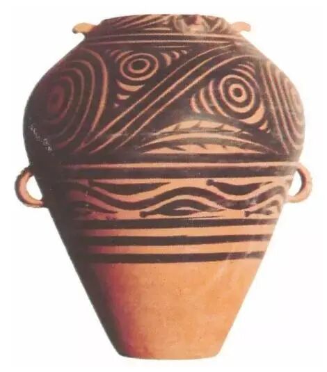 史前时期还没有桌椅等家具,陶器往往被放置在地面或是墙壁内开凿的小龛里。所以很多彩陶的纹饰多集中在陶器的上半部。这样设计,席地而坐的史前居民一低头就可以很方便的看到图案了。