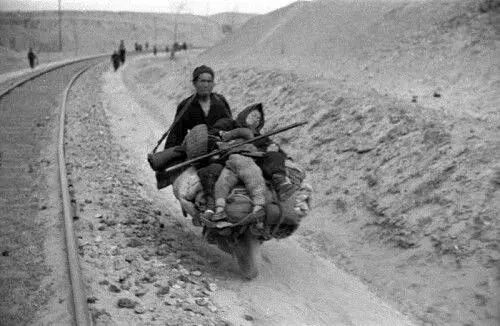 1950年8月雨后,戚永仁、戚永礼两兄弟背着大包小裹走在泥巴路上,他们正在搬家!