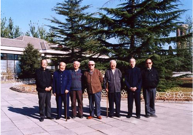 左起:谢辰生、刘久庵、杨仁恺、谢稚柳、启功、徐邦达、傅熹年