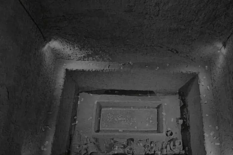 1990年3月5日,考古发掘工作正式开始。但越挖,考古队就越担心,因为往下只挖了0.4米,墓口就显露出来,而且一看就是遭到了破坏。而考古队继续上下挖掘,却发现,孪生大盗的盗洞竟然向下延伸了10多米,甚至盗洞西壁上已经可以看到棺樟顶部板灰的痕迹了,这说明已经快接近棺棹的顶部了!
