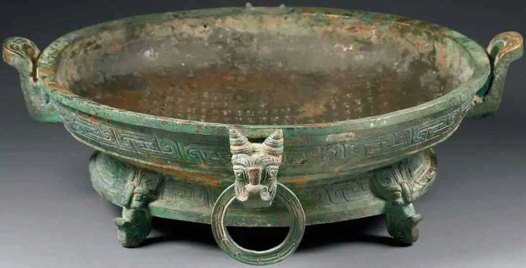 这个盘可不是普通的盘,不是咱们现在饭桌上盛珍馐美食的盘子。盘,在古代是举行沃盥礼时,用来承接弃水的容器。这个逨盘的制作年代为西周宣王时期。它通高 20.4 厘米,口径 53.6厘米,重 18.5 千克。造型庄重典雅,器腹深浅适度,底部平阔。盘内底共有 372 字的铭文,追溯了逨七代先祖开创的伟业。逨的祖上世代辅佐君王,立下了汗马功劳。而逨是第八代,立志要继承先祖的职守。周天子让他继承祖父和父亲的职位,还让他管理林木、草场等,并给了他很多赏赐。逨对天子感激涕零,于是做了这个盘子歌颂天子,追念先祖。