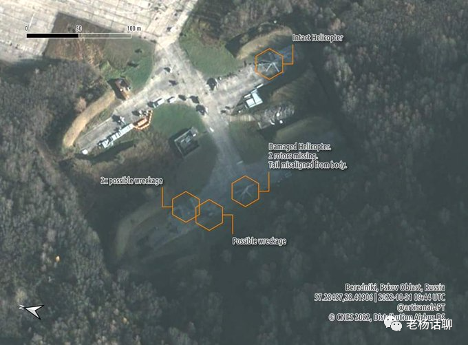 三天前,这里发生巨大的爆炸,两架卡52直升机和一架米28N直升机被摧毁。下面这个,就是卫星照片。