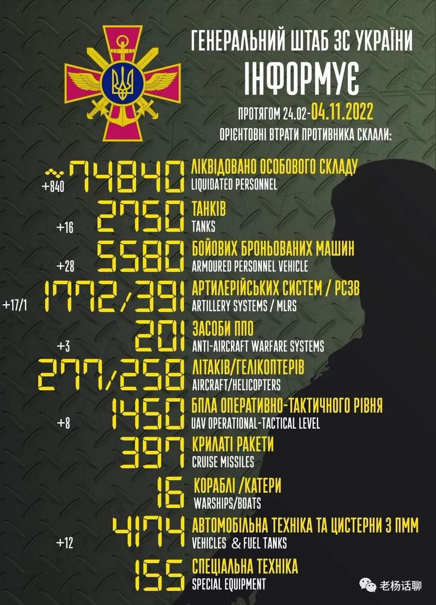 还是乌克兰方面公布的俄罗斯战损情况,再给大家抄一下吧,因为今天俄罗斯的阵亡人数,达到了第二史高:840人。
