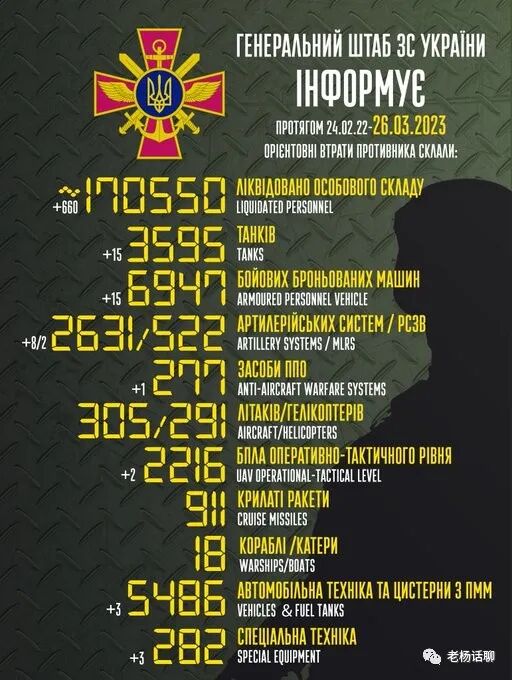 开战至3/26日06:00为止俄军阵亡和损失统计