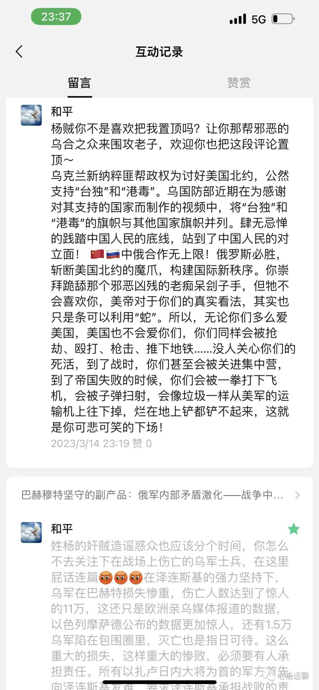 很多挺俄的声音中,那些不断渲染泽连斯基想停战但是美国人不允许的文章,短视频之类的,