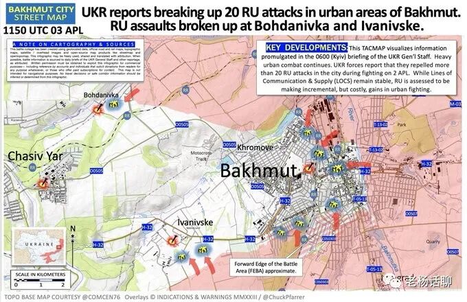 激烈的城市战斗仍在继续。乌克兰部队报告说,他们击退了俄军对该市的 20 多次攻击。通信与供应线 (LOCS) 保持稳定,今日战场俄军被评估为: